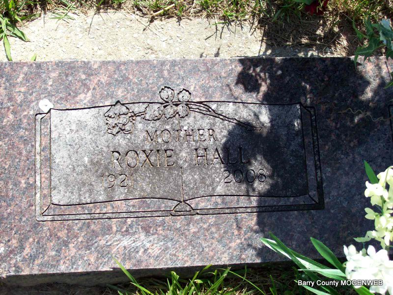 Inscription: "Mother" - Research Note: She is buried next to Everett Hall. She was a daughter of Oliver and Allie (Cantrell) Anderson. On Jan. 8, 1938 she married Everett Hall and to this union 3 children were born. He preceded her in death in 1971. She was preceded in death by her parents and one son, Gary Hall, and four brothers and one sister. On June 22, 1974, Cassville, she was united in marriage to Albert H. "Cotton" Maloney. - Donna's Note: Her stone reads Hall but when she died her name was Maloney. Phyllis' Note: Daughter of Oliver and Allie (Cantrell) Anderson. Married first Everett Hall (deceased). Survived by Mr. Maloney, one son and one daughter | Photo Darla Marbut Cassville Democrat Donna Cooper Barry Co. Advertiser Phyllis Long |