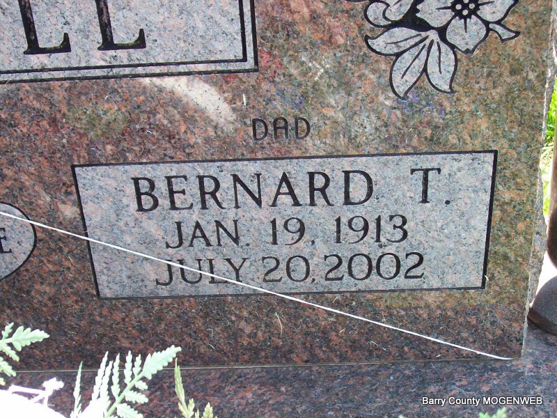 | O'NEILL, Bernard Thomas "Barney" | Jan. 19, 1913 | July 20, 2002 Red Rose Inn, Cassville, Barry Co., MO |