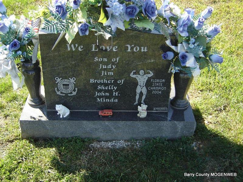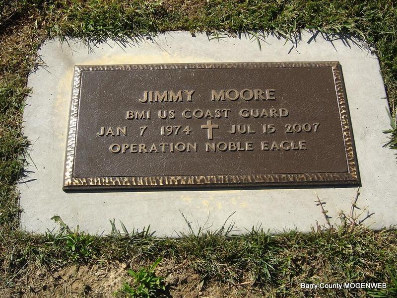 Research Note: He was a son of Jim Moore and Judy (Lyall) (Moore) Creech. He received his education in Cassville where he graduated with the Class of 1992. He joined the United States Coast Guard and was a member of the reserves. In 1998 he moved to West Palm Beach, Fla. to make his home. He was working as a personal trainer and had received the title of Florida State Bodybuilding Champion. - Back of Stone - Military Stone - Inscription: "BMI US COAST GUARD - OPERATION NOBLE EAGLE" | Cassville Democrat Phyllis Long Photos Ted Roller |