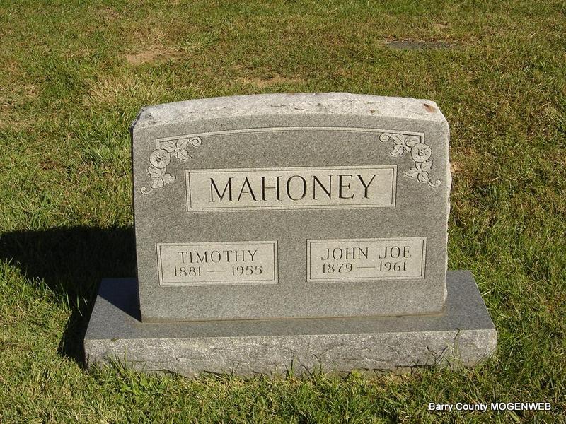 SSW: John Joe - Research Note: His death certificate reads that he was divorced but that his wife was Cora (Karlstad) Mahoney. His father is given as John Mahoney and his mother as Margaret Connelly. He was a retired carpenter. Cato of Barry Co., MO, was his usual address. Apoplexy was given as the cause of death. | Death Certificate Donna Cooper Photo Ted Roller |
