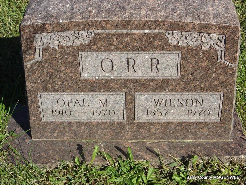SSW: Opal May - Research Note: Culver's Funeral Home has that his father was Thomas Orr and that his mother was Katherine Wilson. He was a retired farmer and was 83 years old. His wife was given as Opal (Hall) Orr, Cassville, MO. Loren Easley and Alvin Bennett preached his funeral. Opal was the informant on the death certificate. | Photo Ted Roller Culver's Funeral Home, V. 14, P. 22, by Ted Roller Donna Cooper SS Claims Index Death Certificate Phyllis Long |