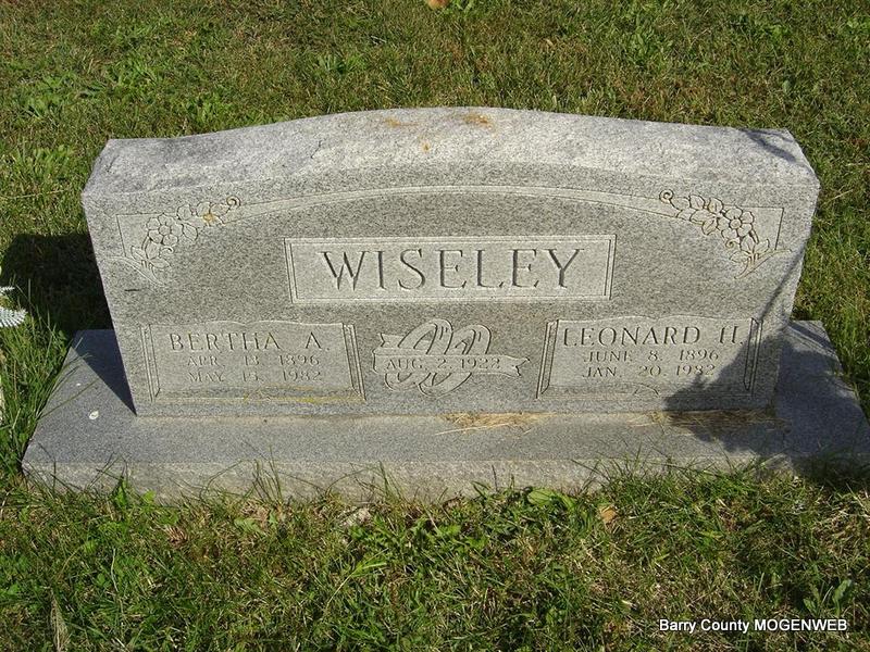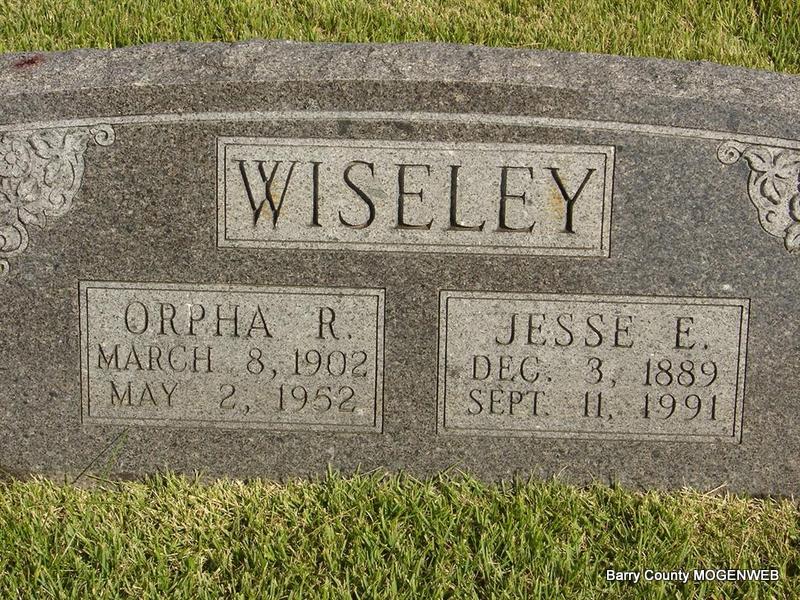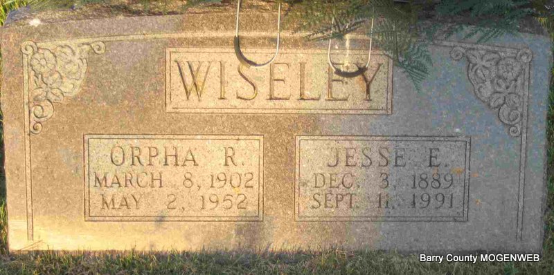 | WISELEY, Orpha Rowena (PATTON) | Mar. 8, 1902 Barry Co., MO |