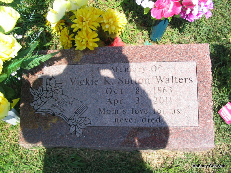 Research Note: Her name was given as Vickie K. Sutton Walters but no mention of a Sutton. The obit names sons as Matthew Glukert and Blake Roberts, so must have been married more than once. She was a daughter of Harold E. and Beulah I. (Bolton) Smith. On March 2, 2010, she was untied in marriage to William Bud Walters. Preceding her in death were her grandparents, Stephen Douglas Bolton and Albert and Irene Gentry; a step-brother, Bobby Terry and an uncle, Larry W. Bolton. Vickie received her education at Cassville, Missouri, where she spent much of her life. | Fohn Funeral Home Photo Phyllis Long |