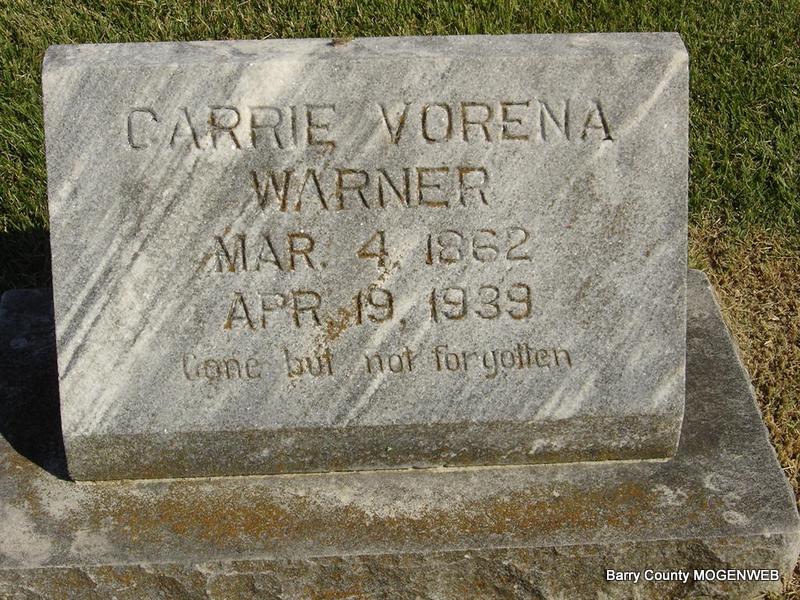 | WARNER, Carrie Vorena (COOK) | Mar. 4, 1862 Giles Co., TN |