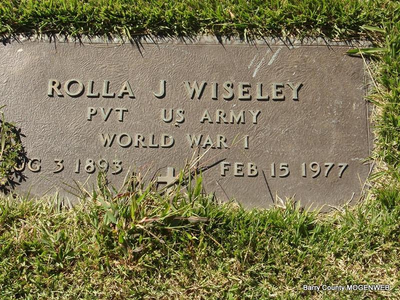 | WISELEY, Rolla James | Aug. 3, 1893 | Feb. 15, 1977 | SSW: Bessie Ila - Inscription: "PVT US ARMY - WORLD WAR I" - Son of James Leonard Wiseley and Lydia Ann Mills. - Military Stone | Census Phyllis Long Photo Elmer Thorn Photo Ted Roller |
