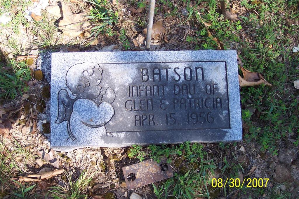 Inscription: "Infant Daughter of Glen & Patricia" - Research Note: Infant daughter of Glenn H. Batson and mother's maiden name was Ballard. | Death Certificate Phyllis Long Photo Diana Cope |