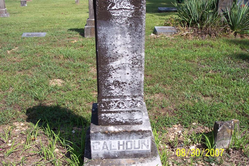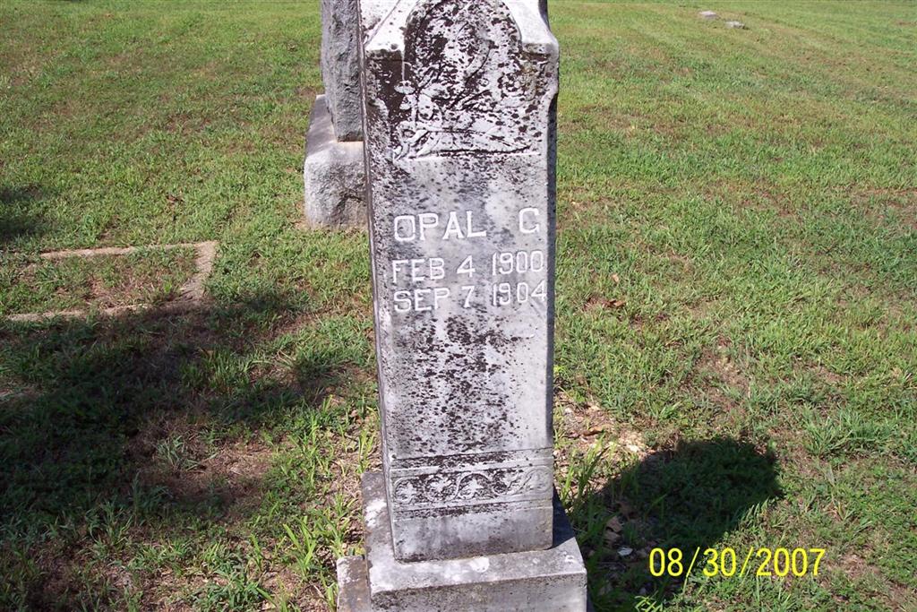 | CALHOUN, Opal C. | Feb. 4, 1900 | Sept. 7, 1904 | SSW: Finis - Research Note: Daughter of William Newton Calhoun and Mary Ann King. - Back of Stone - Inscription: "Brother & Sister" - Side With Name | Census Phyllis Long Photo Diana Cope |