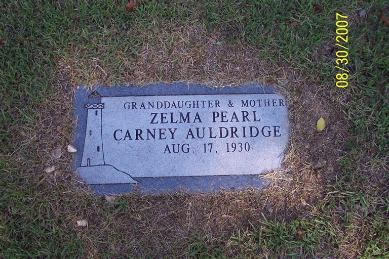 | AULDRIDGE, Zelma Pearl (CARNEY) | Aug. 17, 1930 | No Date | Inscription: "Granddaughter & Mother" - Research Note: Maybe daughter of Lowell Carney and Norma Nell Seitz. | Census Phyllis Long Photo Diana Cope |