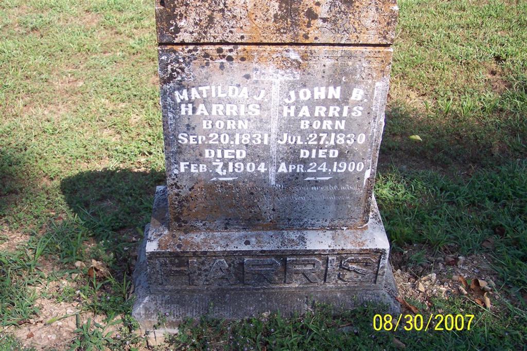 | HARRIS, Matilda Jane (SHELTON) | Sept. 20, 1831 | Feb. 7, 1904 | SSW: John B. - Research Note: John Harris married Miss Jane Shelton on July 31, 1847 in McMinn Co., TN. | TN Marriage Index Phyllis Long Photo Diana Cope |