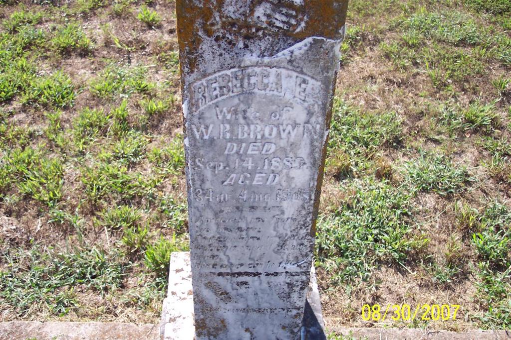 Inscription: "Wife of W. B. Brown - 34 Yr. 4 Mo. 15? Da." - Research Note: Wife of Walter Raleigh Brown and daughter of Thomas Hastings Potter and Orpha Jane Love. | Personal Knowledge Shirley Writer Chang Photo Diana Cope |