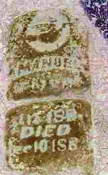 | HENSON, Amanuel? | 5,? 1883? | Dec 10, 1883? | Research Note: Stone is broken and on the ground. Buried in between Cordelia Henson and Young and Matilda's graves. - Computer Enhanced Negative | Note Photo Diana Cope |