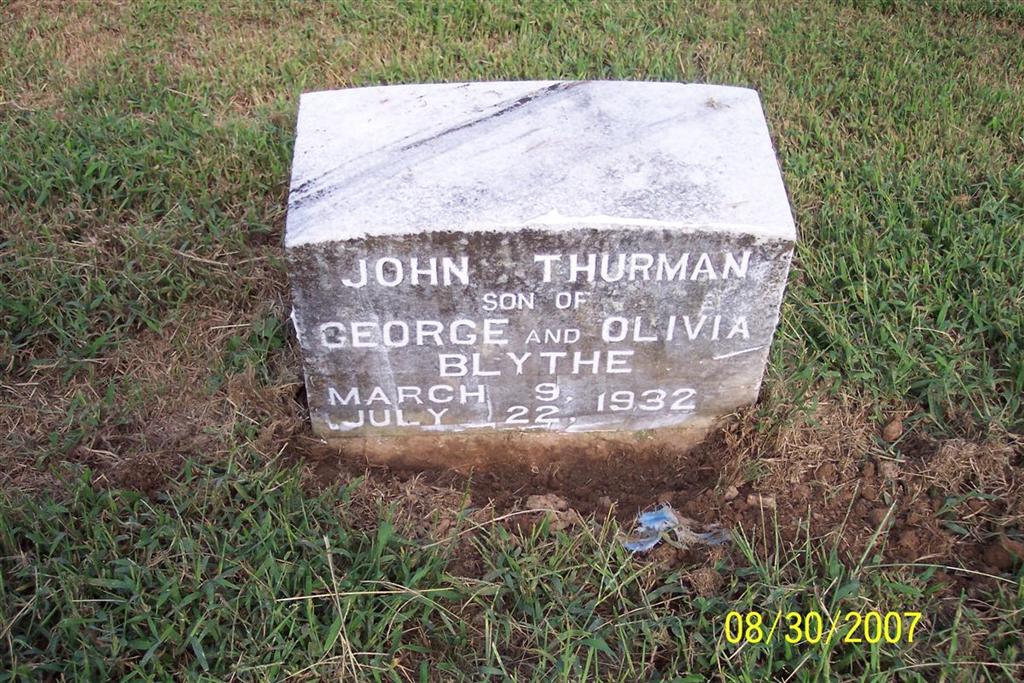 Inscription: "Son of George & Olivia Blythe" - Research Note: His death certificate reads that George Thurman and Olivia Pina (Bradley) Blythe were his parents. His father was born in Cato, MO and his mother in Pawnee, OK. He died from the effects of whopping cough. He was buried in Pleasant Valley Cemetery (Carney). | Death Certificate Donna Cooper Photo Diana Cope |