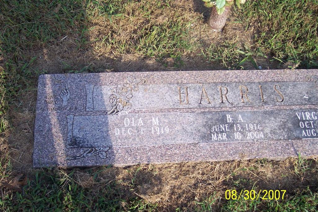 | HARRIS, B. A. | June 13, 1916 | Mar. 10, 2004 | SSW: Ola M. & Virginia E. | Photo Diana Cope |