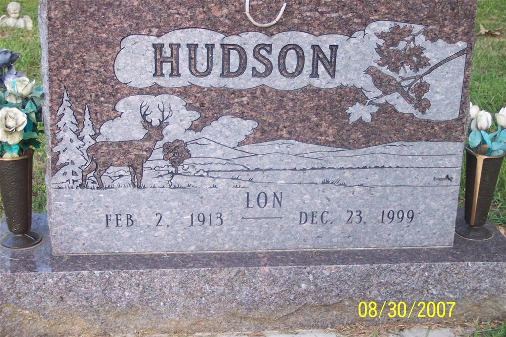 Research Note: Preceded in death by a first wife Reatha (Oliver) Hudson & second wife Opal (Foster) Hudson, who passed away June 98. Also preceded in death by son, Royle Hudson, son of Lon and Opal. Son of Amos Huston Hudson and Bessie Hanson. - Monett Times Dec. 27, 1999 - Mr. Hudson was born February 2, 1913, in Cape Fair, the son of Amos and Bess (Henson) Hudson. He was a lifelong area resident and a member of the Church of Christ in Cape Fair. He was married to Reatha Oliver Hudson, and she preceded him in death. He was married to Opal Foster Hudson, and she preceded him in death. Survivors include one son, two daughters, one sister, seven grandchildren and seven great grandchildren. He was preceded in death by one son, Royle Hudson; and one sister, Lucille Williams. - Another Photo | Monett Times Dec. 27, 1999 Granddaughter Angela Online Obit Phyllis Long Photo Diana Cope |