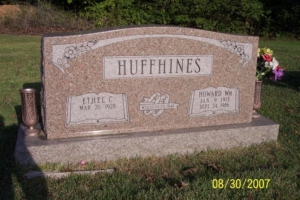 | HUFFHINES, Howard William | Jan. 9, 1913 | Sept. 24, 1986 | SSW: Ethel C. - Inscription: "Wed June 23, 1946" - Research Note: This note was online: There is a biography about Howard in "History of Stone Co MO Vol. 1" by Stone Co. Historical Society, page 479. | Note Phyllis Long Photo Diana Cope |