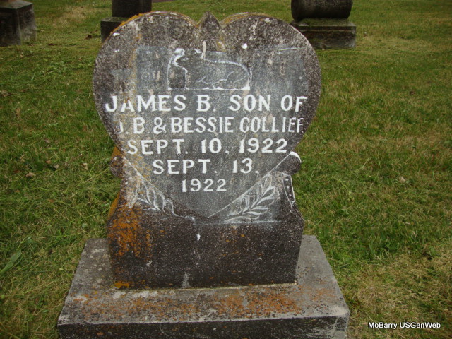 | COLLIER, James B. | Sept. 10, 1922 | Sept. 13, 1922 | Inscription: "Son of J. B. and Bessie Collier" | Photo Stefanie Forester |