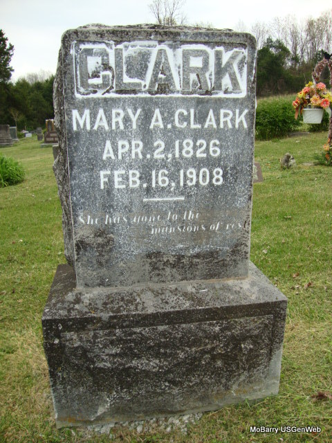 | CLARK, Mary Ann (RICHMOND) | Apr. 2, 1826 | Feb. 16, 1908 | Research Note: Her mother was Named Ann Clark in the 1850 Census, father not listed. Mary Ann Richmond married Ebenezer Clark on Nov. 25, 1855 in Marshall Co., VA. Mother of Jason Clark listed above. Grave #411. | VA Marriage Index Census Phyllis Long Photo Connie Schmidt |
