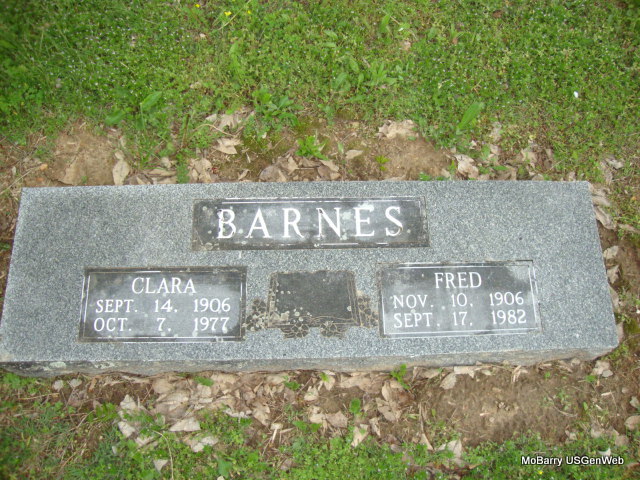 | BARNES, Fred | Nov. 10, 1906 | Sept. 17, 1982 | SSW: Clara Barnes - Research Note: Son of John Smith Barnes and Clarinda VanVactor. Grave #345. | Census Phyllis Long Photo Connie Schmidt |