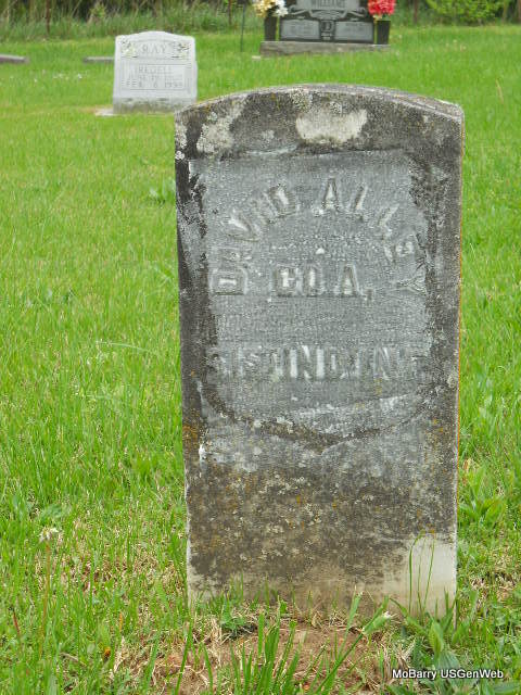 Inscription: "CO. A, 51st Ind. Inf." - Research Note: He was the son of William Alley and Elizabeth Owen and the husband of Nancy Jane Bridgewaters buried in Baxter Springs, Cherokee Co., KS. David's family is buried in the Mountain View Cemetery, Davenport, Lincoln Co. WA. Grave #578. | Note Stefanie Forester Photo Vicki Kizer |