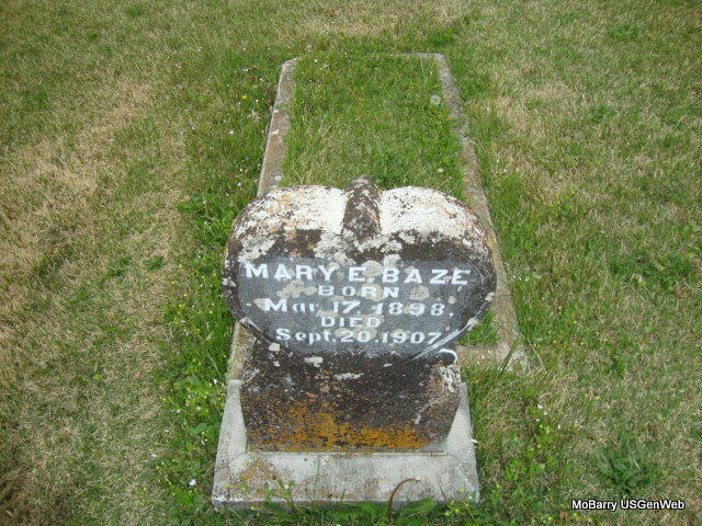 Research Note: Daughter of Henry Love and Ida Mae (Clanton) Baze. She was listed as "Emma Baze" in King Funeral Home Record and died of diphtheria. Grave #427. - Another Photo | Headstone Joan Viney King Funeral Home Jay Trace Photo Connie Schmidt |