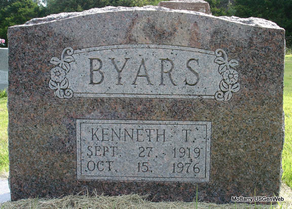 | BYARS, Kenneth T. | Sept. 27, 1919 | Oct. 15, 1976 | Research Note: Son of Thomas and Gladys Byars. Grave #265. | Census Phyllis Long Photo Stefanie Forester |