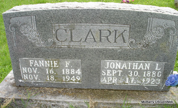 SSW: Jonathan L. Clark - Research Note: Her death certificate, indexed as Frannie, states that her father was Jacob Fink and that her mother was Marie Clem, and that she was a widow. Her husband was named John Lewis Clark. Willie Vance Clark of Verona, MO, gave the information. | Death Certificate Donna Cooper Photo Stefanie Forester |