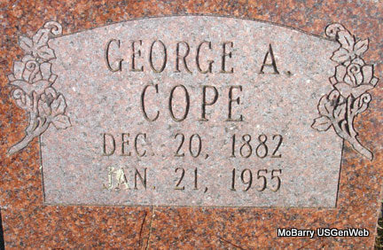 | COPE, George Alonzo | Dec. 20, 1882 | Jan. 21, 1955 Aurora, Lawrence Co., MO |