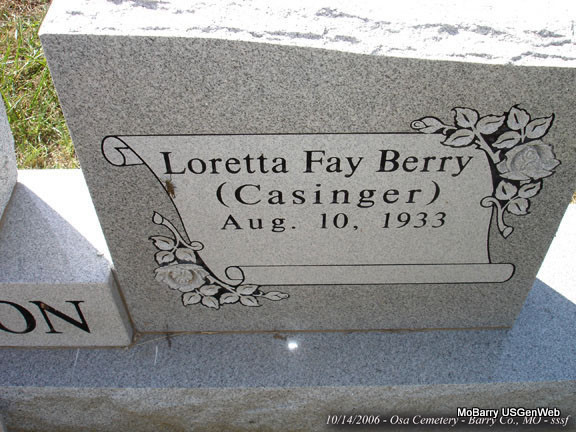| BERRY, Loretta Fay (FELTON) (CASSINGER) | Aug. 10, 1933 Barry Co., MO |