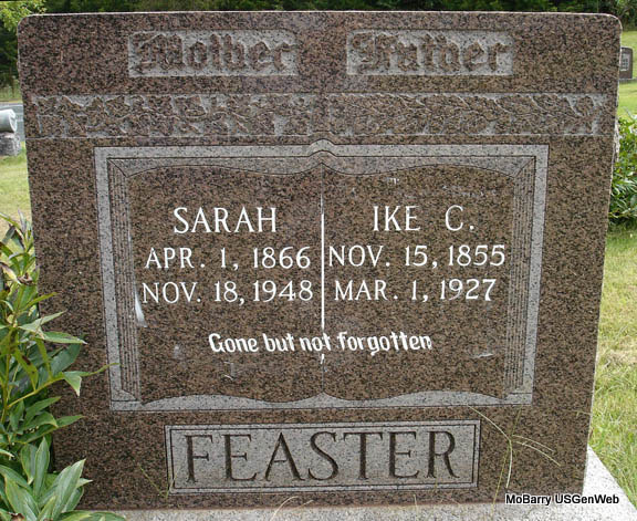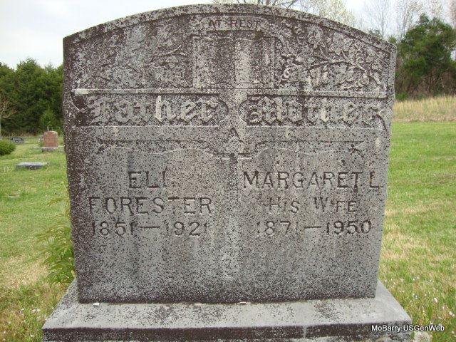 SSW: Margaret Forester - Research Note: He was the son of Owen Franklin Forester born TN and Elizabeth Quinn born NC. 1880 Census his wife is Trecia/Treacy (O'Quinn), age 24. Treacy died in 1890 and is buried at Charity Cemetery, Stone Co., MO. Eli Forester married Mary Wagnor on Mar. 1, 1885 in Stone Co., MO. Eli Forester married Maggie (Copeland) Branstetter on Apr. 17, 1895 in Stone Co., MO. Grave #510. | MO Marriage Records Census Phyllis Long Photo Connie Schmidt |