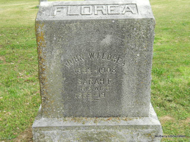 SSW: John W. Florea - Research Note: She died of pneumonia. The bill was charged to C. Pharis, paid 2 years later by Minnie Bailey. Father was given as William Wise, mother as __ Nevins (1860 census gives her as Emily Wise), both born in TN. Jay posted Mar. 5, 1852 but stated that the record was unclear for the last name so the date might have been difficult to read, too. - Her death certificate listed William Wise as her father and her mother's maiden name as Nevins, both born in TN. The record has her name as S. Fannie Flora, a widow, and W. C. Pharis gave the information. - Sarah first married William Moore Phariss, second Henry F. Bier, and third John W. Florea. Sarah F. Wise married William M. Phariss on Dec. 18, 1875 in Lawrence Co., MO. Sarah F. Phariss married Henry F. Bier/Bear on Aug. 8, 1887 in Mt. Vernon, Lawrence Co., MO. Sarah F. Bier, age 40, married John W. Florea, age 39, on Mar. 10, 1896 in Aurora, Lawrence Co., MO. Grave #410. | King Funeral Home Jay Trace Death Certificate Donna Cooper MO Marriage Records Census Phyllis Long Photo Vicki Kizer |