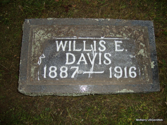 Research Note: A married miner, died of pulmonary tuberculosis. Resource: King Funeral Home Records - Stefanie added Death Cert: "Willis Davis" son of Unknown. Died April 6, 1916, and not the 16th as had been posted. The cause death was pulmonary tuberculosis. He was married and a miner. Informant: Mrs. Willis Davis of Webb City, MO. - Death Certificate: Born Feb. 2, 1886 and died Apr. 6, 1916. Stone has born 1887. Son of Sarah Ella (Jones) (Davis) Boyd, buried at Osa Cemetery. Grave #378. | Note Jay Trace Death Certificate Stefanie Forester Death Certificate Census Phyllis Long |