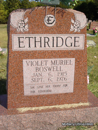 | ETHRIDGE, Mary Ellen (BOUYER) | Mar. 23, 1879 Greene Co., MO |