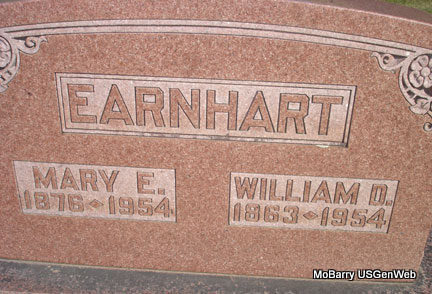 SSW: Mary E. Earnhart - Research Note: According to his death certificate his parents were John Earnhart and Evline Wise. He was married and Mary Earnhart was given as his wife. Roy Earnhart of Crane, MO, gave the information. Stefanie added Death Cert: "William Daniel Earnhart" son of John Wesley Earnhart and Evaline Wise. The cause of death was congenitive heart disease. He was married once to Mary Earnhart and was a farmer. | Death Certificate Donna Cooper Photo Death Certificate Stefanie Forester |