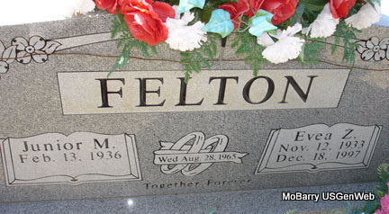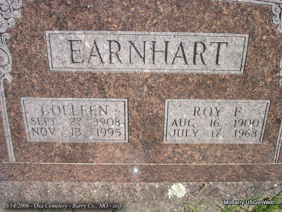 SSW: Colleen Earnhart - Research Note: He was the son of William D. Earnhart born TN and Mary E. Merritt born MO. Usual residence was RR 1, Crane, Stone Co., MO. He first married Anna Forester, and second Colleen Wilkins on May 5, 1938 in Mt. Vernon, Lawrence Co., MO. Grave #213. | Census MO Marriage Records Death Certificate Phyllis Long Photo Stefanie Forester |