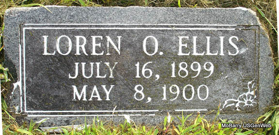 | ELLIS, Loren O. | July 16, 1899 | May 8, 1900 | Research Note: Son of A. D. and M. R. Ellis. Grave #190. | Note Photo Stefanie Forester |