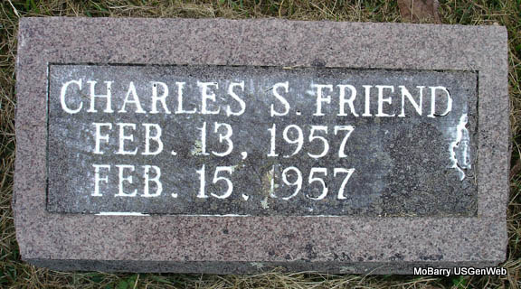 | FRIEND, Charles Sanford | Feb. 13, 1957 Aurora Hosp., Aurora, Lawrence Co., MO |