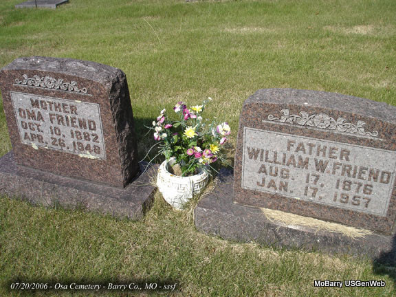 | FRIEND, Oma Elizabeth (MULLINS) | Oct. 10, 1882 Barry Co., MO |
