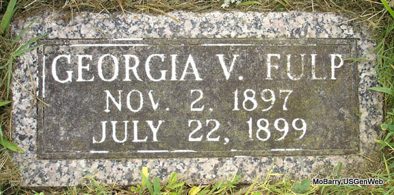| FULP, Georgia V. | Nov. 2, 1897 | July 22, 1899 | Research Note: Grave #200. | Photo Stefanie Forester |