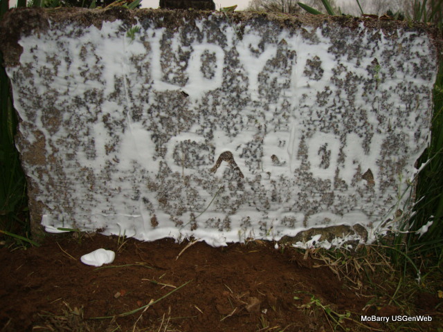 Research Note: This stone appears to have been broken and reset. Right through the middle of the death date is where the stone is now attached to the base, therefore the date unreadable. - Notes at rootsweb say her death date is July 23, 1899. She was the wife of Thomas Lusk born abt. 1803 in TN. Researchers say she was the daughter of Thomas Boydston born NC and Elizabeth Newport born VA. - March 9, 1899, Cassville Republican, Barry Co., MO - Madry News: March 6th, was Grandma Lusk's birthday. She was 90 years old. The neighbors gave her a grand dinner. Her children, grandchildren and great-grandchildren were present and a splendid good time was had. - Grave #319. | Notes Online Newspaper Phyllis Long Photo Stefanie Forester |