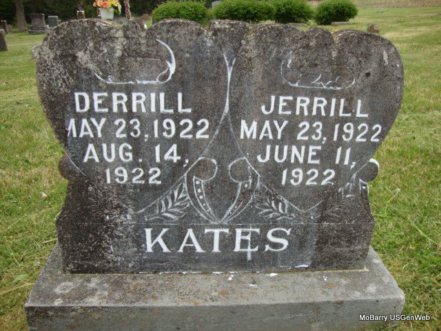 | KATES, Derrill | May 23, 1922 | Aug. 14, 1922 | SSW: Jerrill Kates - Research Note: Grave #394. | Headstone Stefanie Forester Photo Connie Schmidt |
