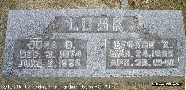 | LUSK, George Xenophan | Mar. 24, 1869 Barry Co., MO |