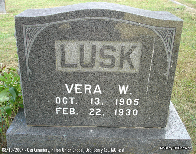 | LUSK, Vera W. | Oct. 13, 1905 Marionville, Lawrence Co., MO |