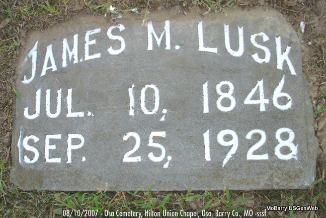 | LUSK, James Montgomery | July 10, 1846 Barry Co., MO |