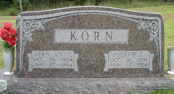 | KORN, Fern Anne (FRIEND) | Dec. 28, 1904 | Jan. 27, 1984 | SSW: Joseph F. Korn - Inscription: "Together Forever" - Research Note: Daughter of William Walter Friend and Oma Mullins. | Census Phyllis Long Photo Stefanie Forester |