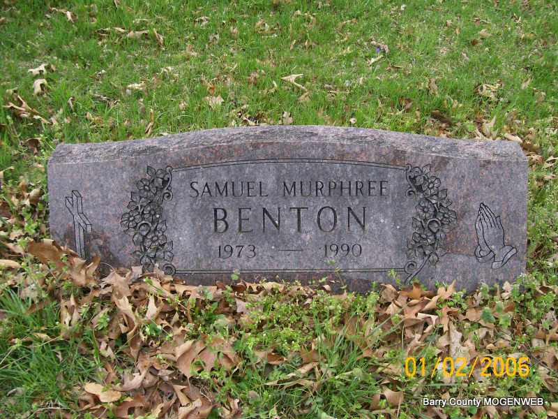 | BENTON, Samuel Murphree | 1973 | 1990 | Research Note: Son of Barney Garland Benton and Julia Ann Tilden. | Transcription Penny Cooper Bailey Father's Obit Phyllis Long Photo Jay Trace |