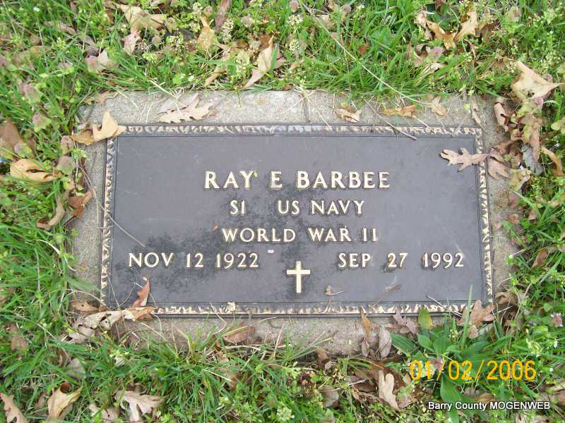 Sep. 27, 1992 | SSW: Loreta F. - Inscription: S1 US NAVY - WORLD WAR II" - Research Note: Son of Frank J. Barbee and Georgia M. Gray. - Back of Stone - Military Stone - Inscription: "S1 US NAVY" | Transcription Penny Cooper Bailey SS Claims Index Phyllis Long Photos Jay Trace |