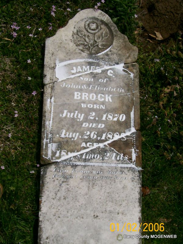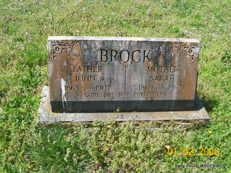 | BROCK, John, Jr. | 1863 | June 1907 Barry Co., MO |