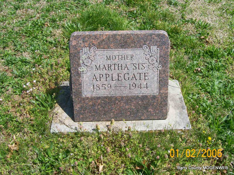 | APPLEGATE, Martha "Sis" (JAMES) | Mar. 4, 1859 MO |
