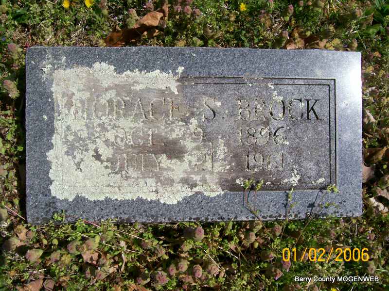 | BROCK, Horace S. | Oct. 9, 1896 Shell Knob Barry Co., MO |