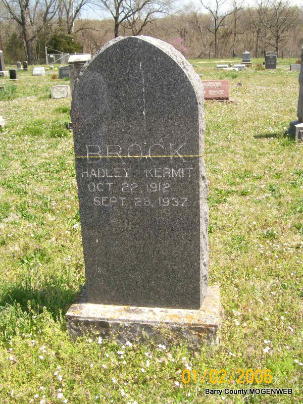 | BROCK, Hadley Kermit | Oct. 22, 1912 Shell Knob Barry Co., MO |